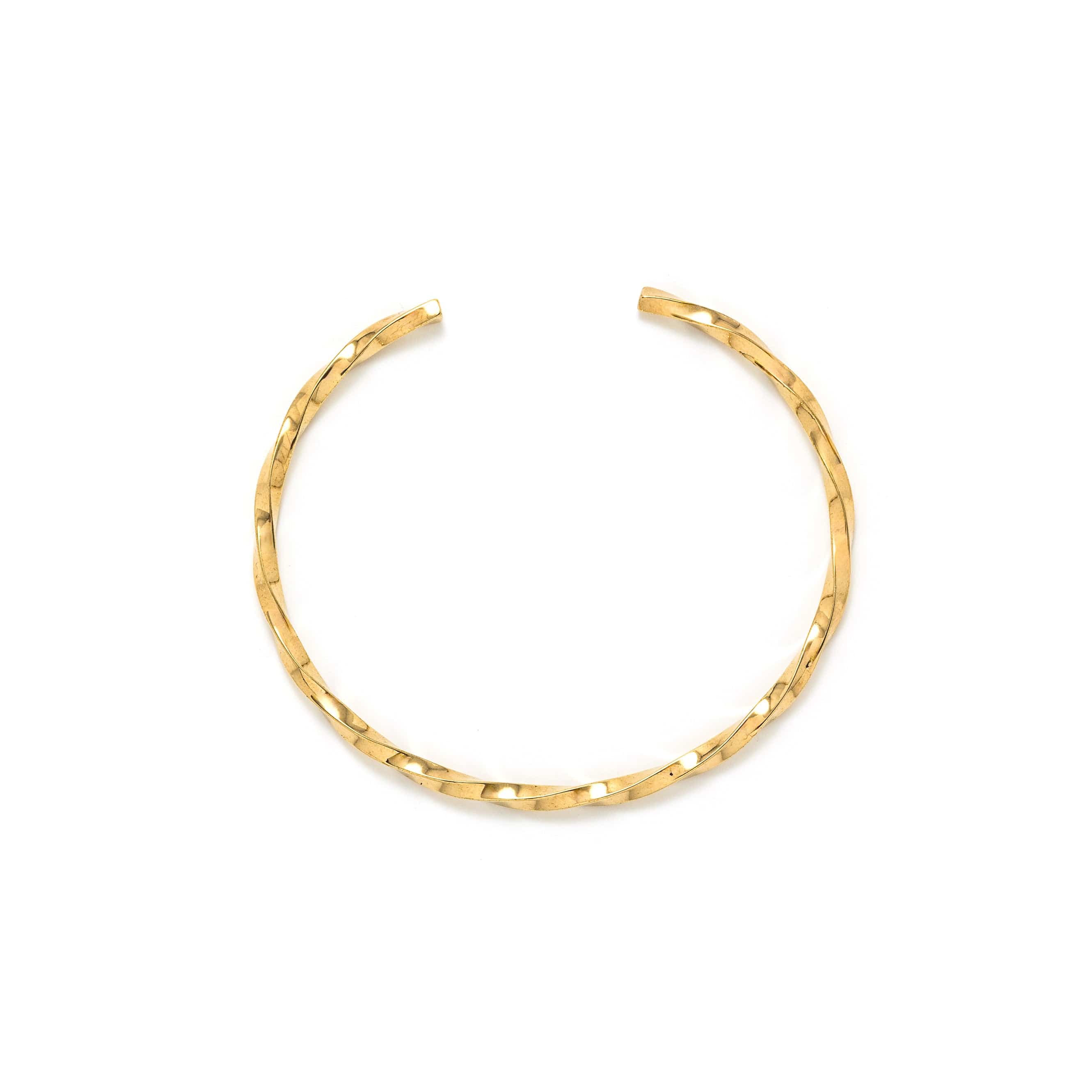 Add a delicate twist to your wrist with a delicate Honey Bangle. This gold plated bracelet is perfect for stacking along with your favourite accoutrements or wearing alone for a just a hint of gold.