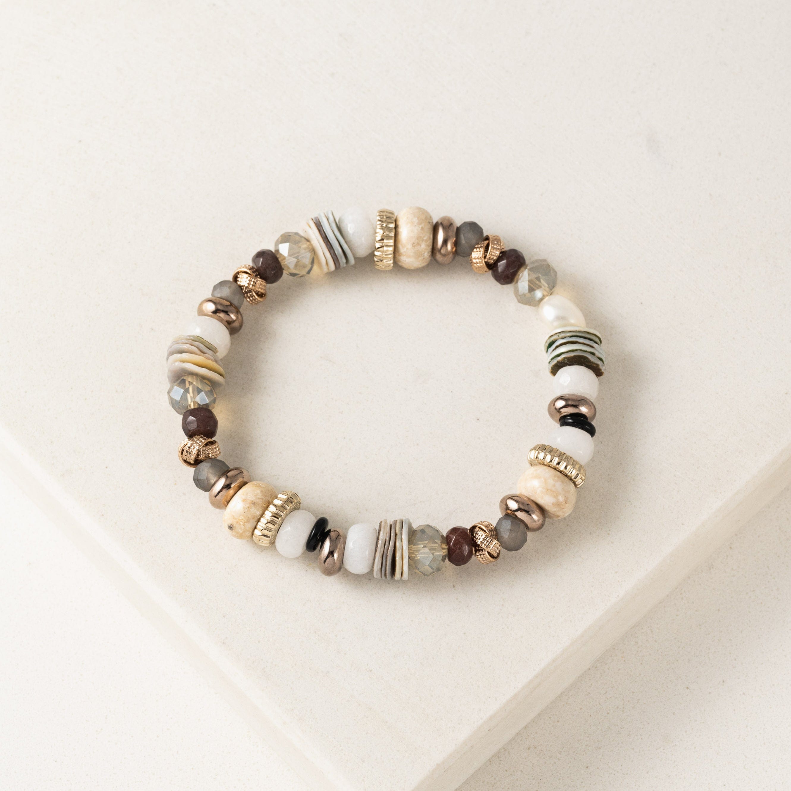 A mixed beaded stretch bracelet with a playful, eclectic feel, as if you've gathered a handful of summer memories and strung them together.