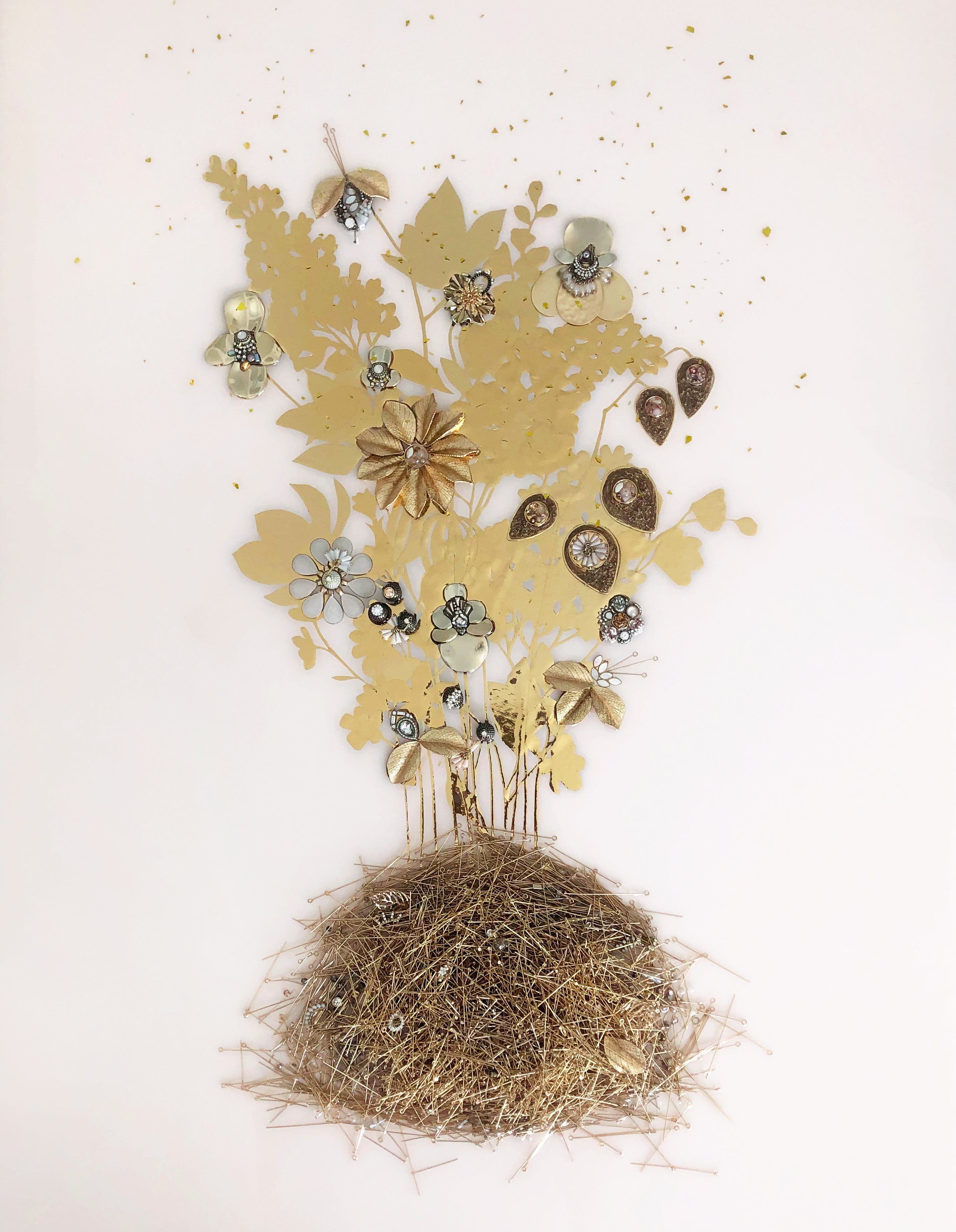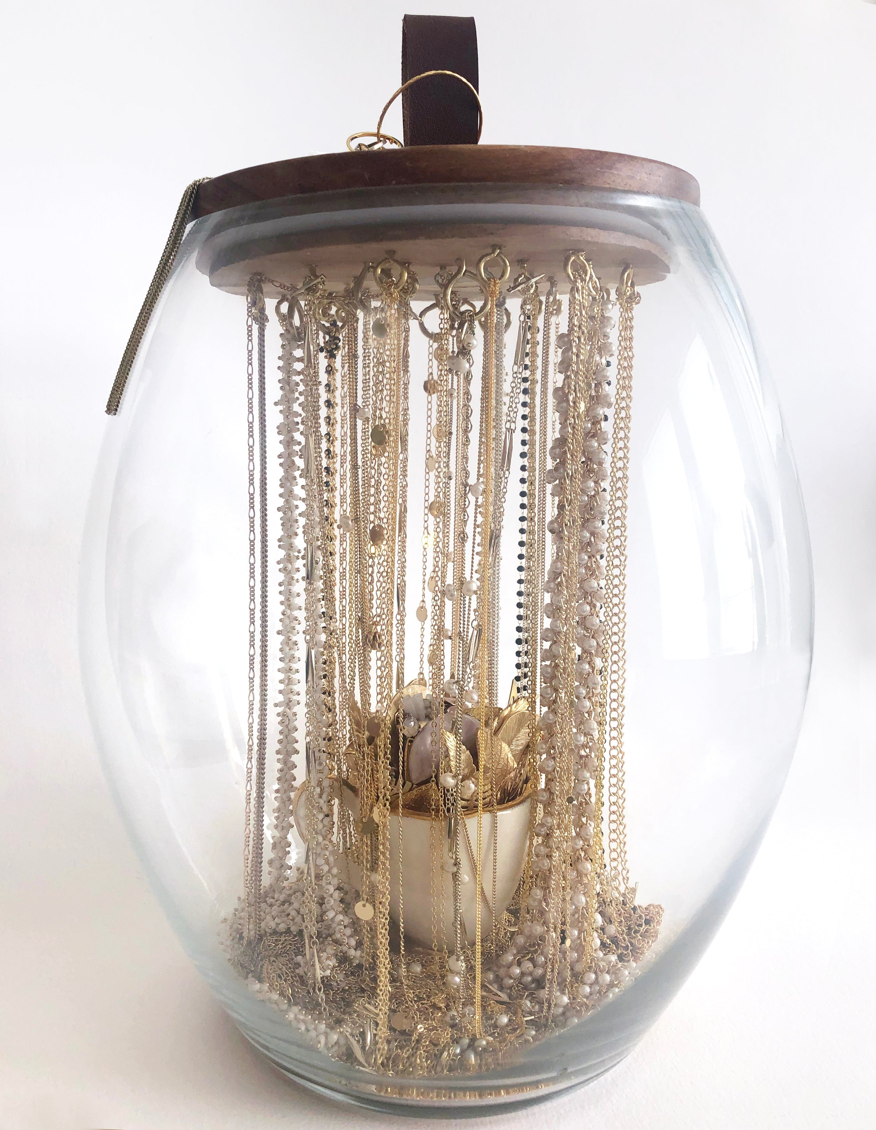To do this, we collaborate with Canadian artists who incorporate any damaged pieces of jewelry or discarded components into unique pieces of art.